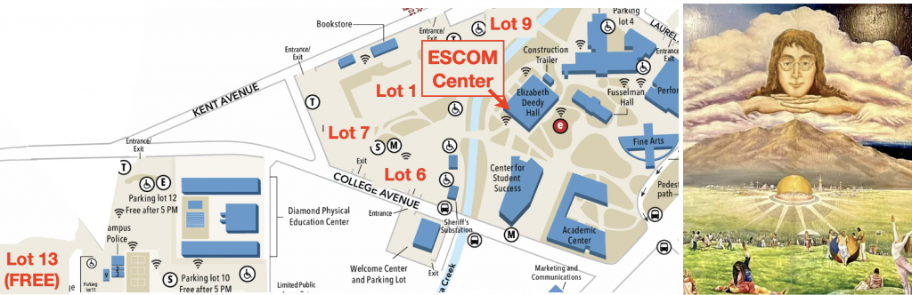 Parking costs $4 in most Kentfield campus lots. Payment is required at all times, Monday to Saturday. You can pay in advance using the online system or after arriving via parking lot kiosks (a QR code is posted on each kiosk). Free parking is available in Lot P13, an unpaved lot a half-mile walk from the ESCOM Center.